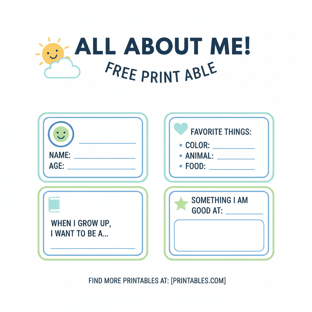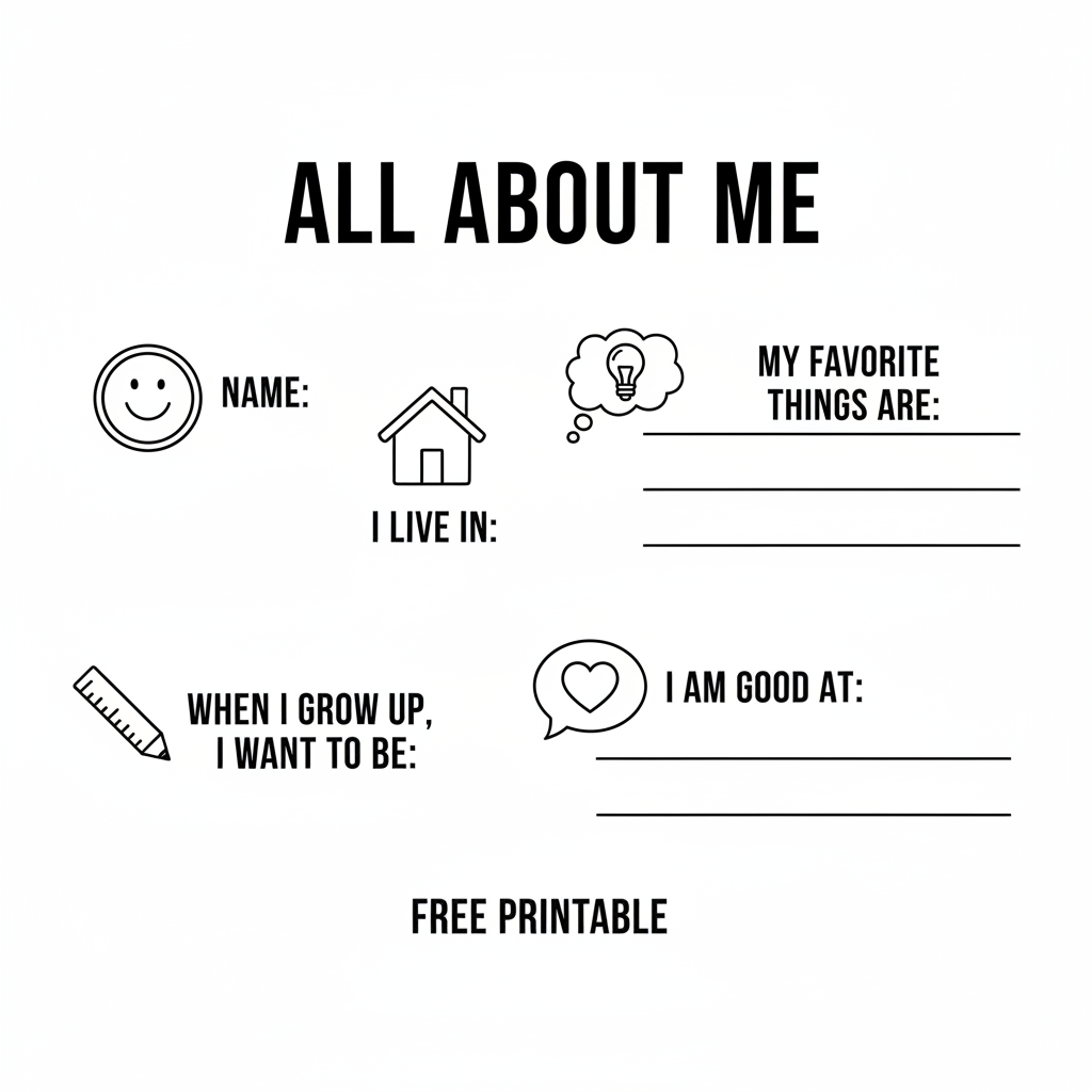 Looking for a fun and engaging way to learn more about yourself or help others learn about you? Our free 'All About Me' printable is the perfect solution! This instant download PDF is designed for kids, students, or anyone wanting to create a personal profile. It's a fantastic tool for classroom activities, icebreakers, or simply getting to know...