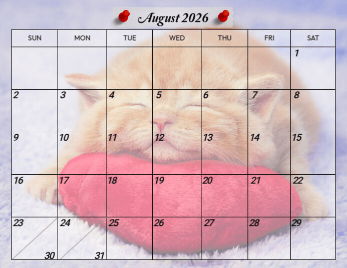 Need to stay organized in August 2026? Our free, printable August 2026 calendar is the perfect solution! This calendar is designed to help you track appointments, deadlines, holidays, and personal events. Ideal for students, families, and professionals alike, our calendar is available in an easy-to-download PDF format. Simply download, print, an...