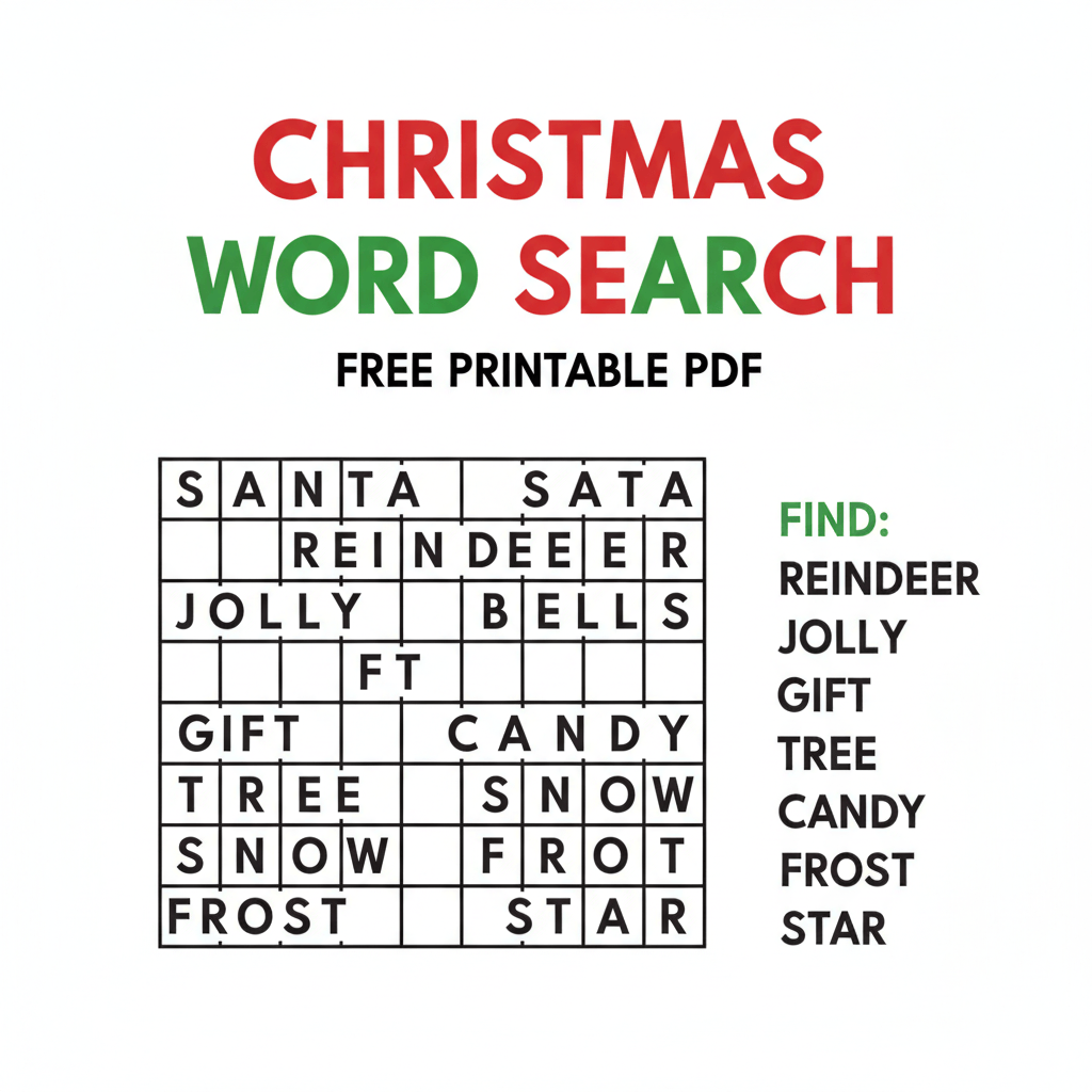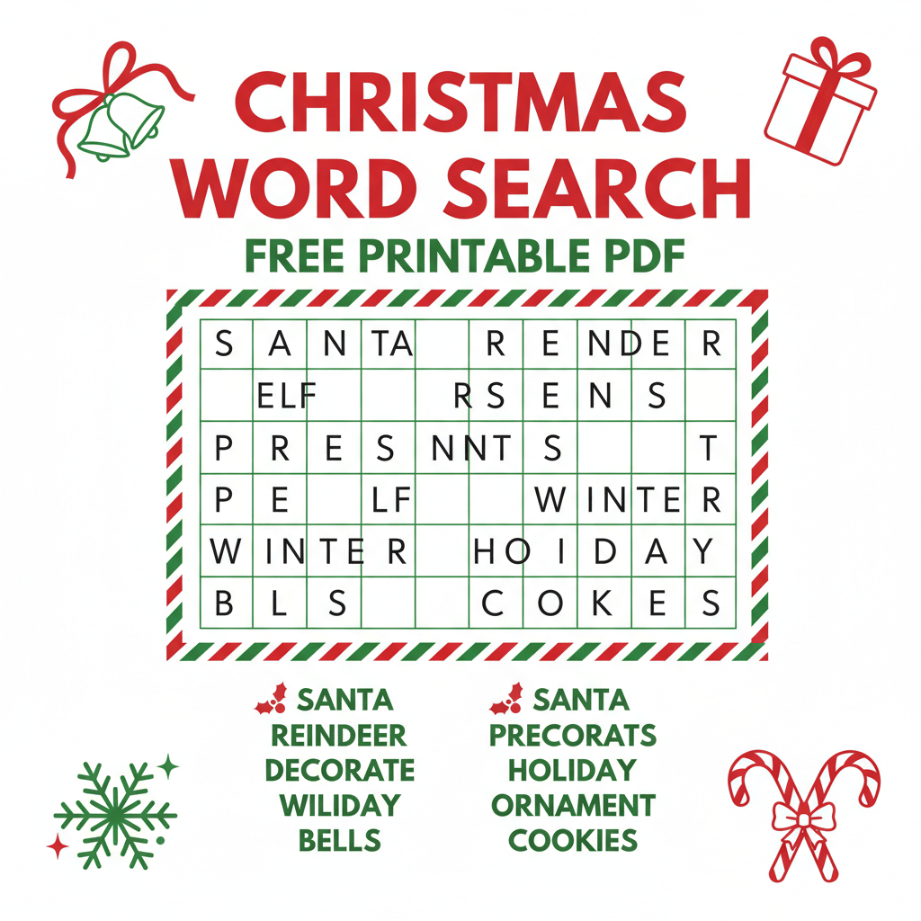 Looking for a fun and free Christmas activity? Our Christmas Word Search printable is the perfect solution! This festive word search is available as a free PDF download, making it easy to print and enjoy instantly. It's a great activity for kids, adults, classrooms, or holiday parties. Keep everyone entertained while boosting vocabulary and prob...