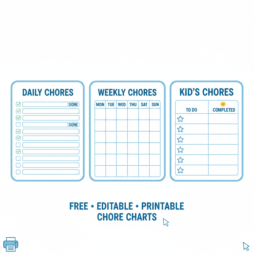 Need help managing chores at home? Our free editable printable chore charts are the perfect solution! Designed for kids and families, these charts make tracking and completing tasks easy and fun. Each chart is a printable PDF that you can instantly download and customize to fit your specific needs. Whether you need a daily, weekly, or monthly ch...