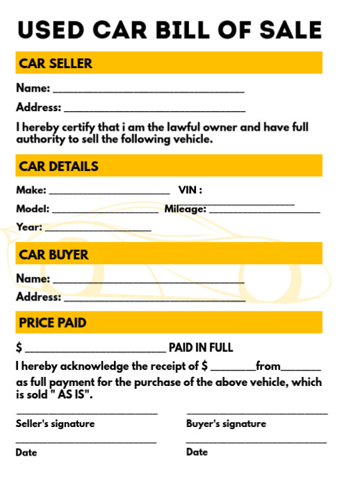 Need to document the sale of a vehicle? Our free printable bill of sale for car is a quick and easy solution. This legal form is essential for both the buyer and seller to protect their interests and provides proof of ownership transfer. Download our high-quality PDF template instantly and fill it out with ease. It's completely free to use and d...