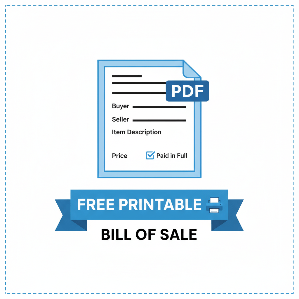 Need a simple and legally binding Bill of Sale? Download our free, printable Bill of Sale PDF template. This document is essential for recording the transfer of ownership of personal property, such as vehicles, boats, or other valuable items. It's designed for individuals and businesses who want a clear and documented record of a sale. Our Bill ...