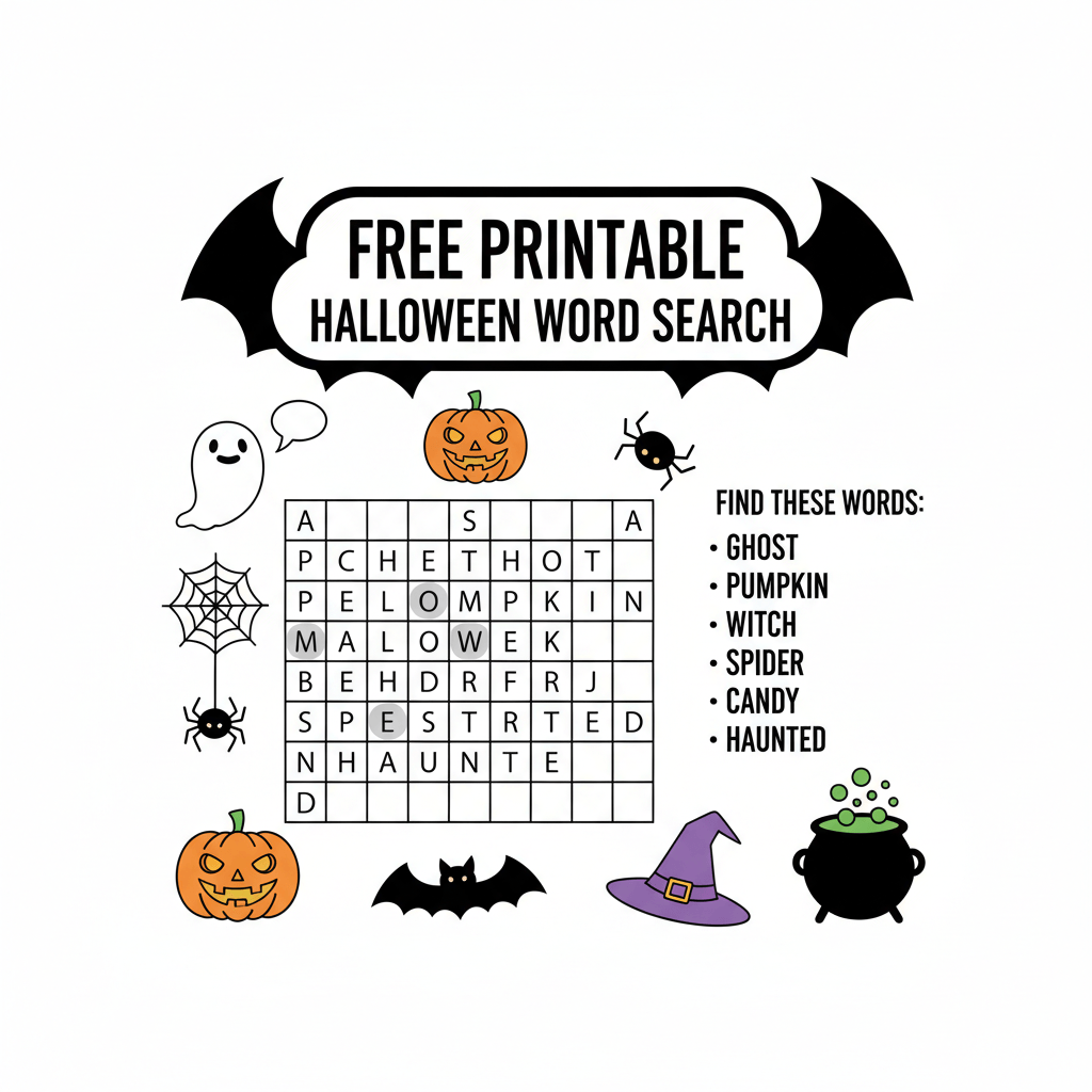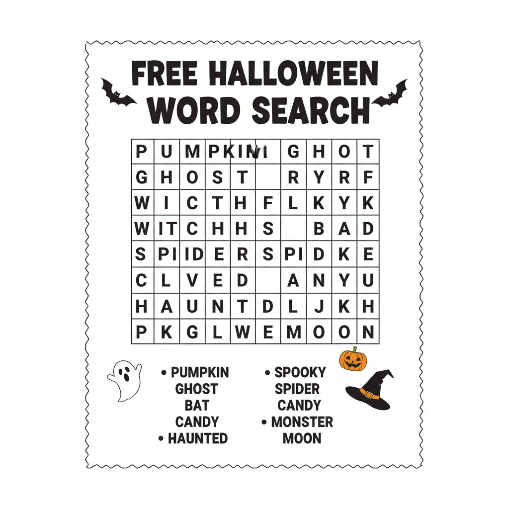 Looking for a fun and free Halloween activity? Our printable Halloween word search is the perfect solution! This spooky puzzle is designed for kids and adults of all ages. It's a fantastic way to keep the little ones entertained at Halloween parties or just enjoy a relaxing activity during the Halloween season. This word search features Hallowee...