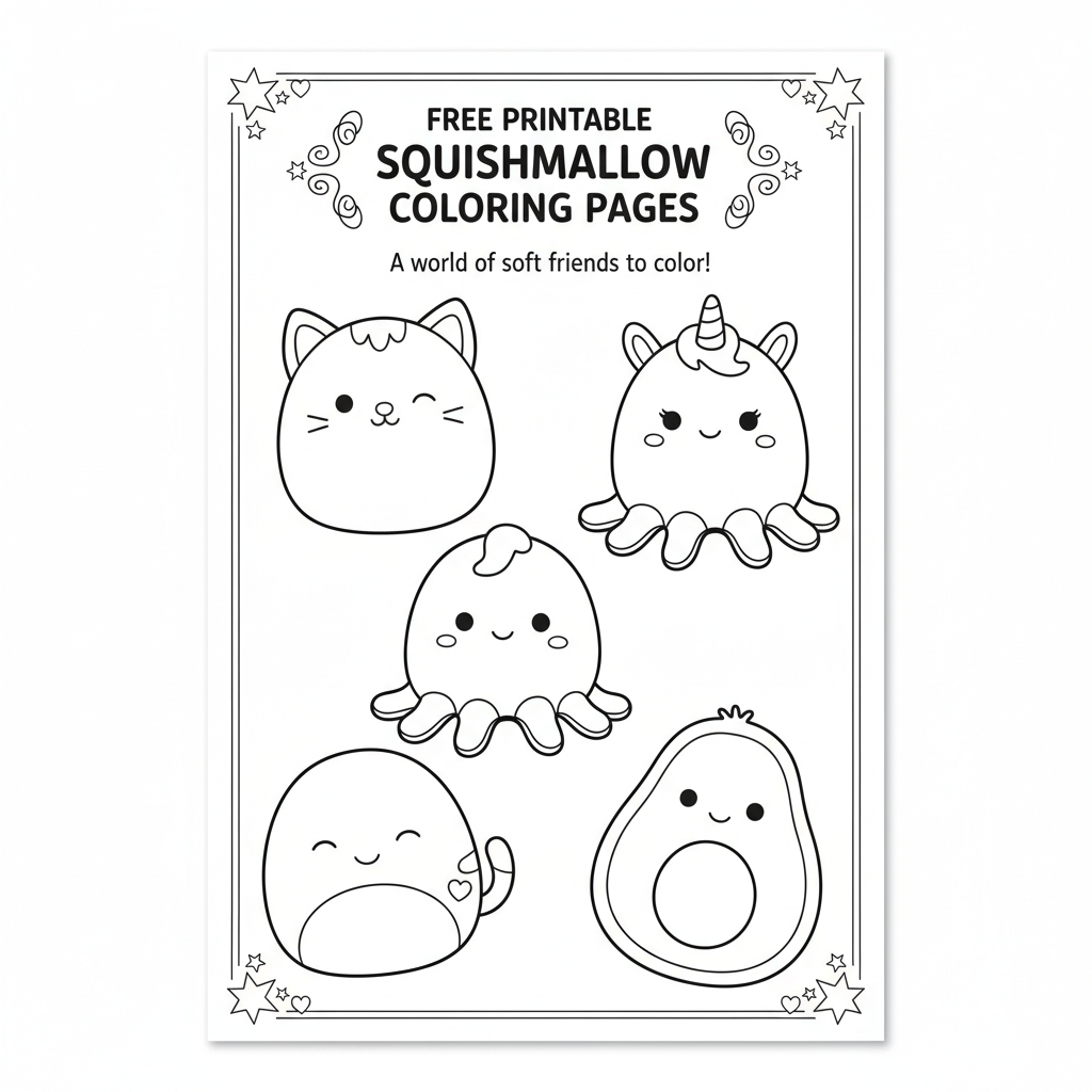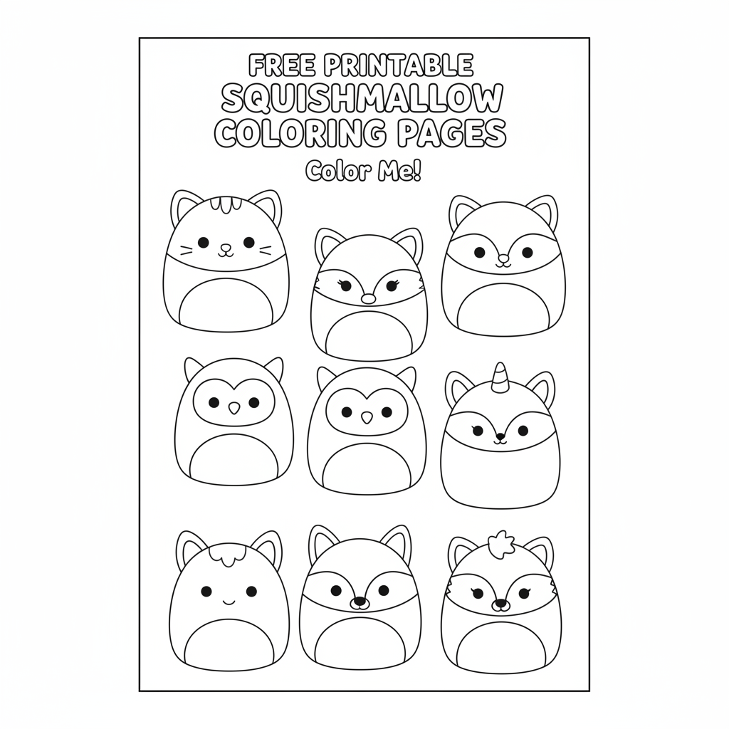 Dive into the cuddly world of Squishmallows with our collection of free printable coloring pages! These adorable and huggable characters are ready for you to bring them to life with your favorite colors. Perfect for kids, Squishmallow enthusiasts, or anyone looking for a relaxing and creative activity, these coloring pages feature a variety of S...