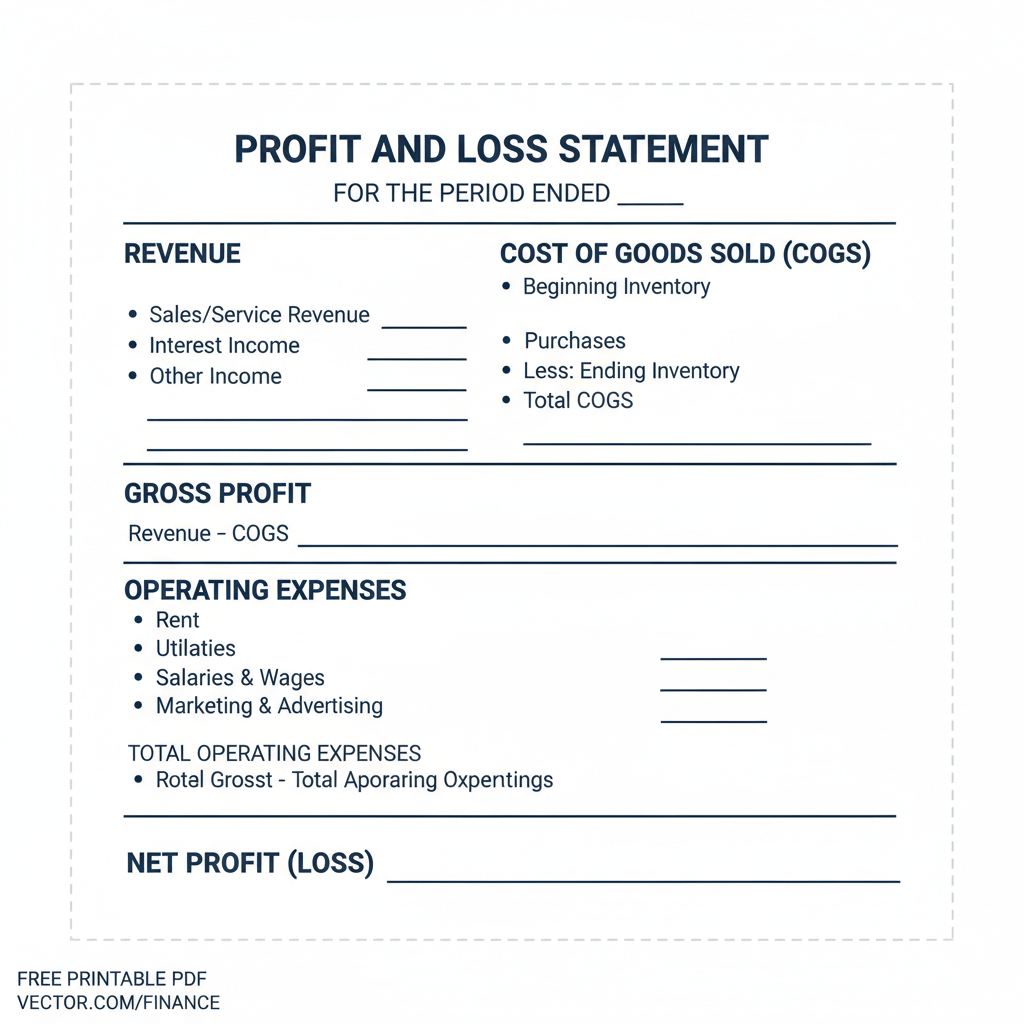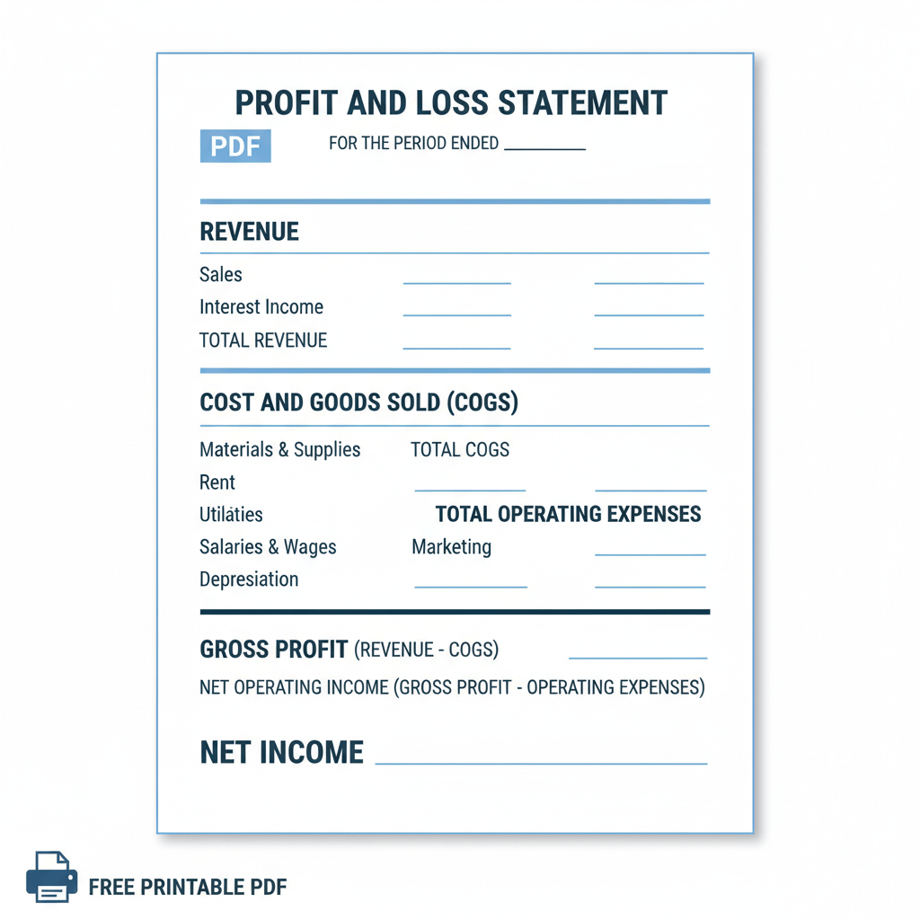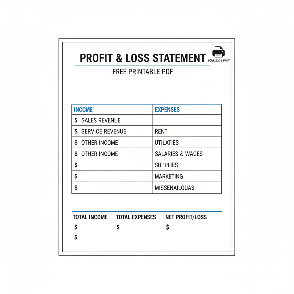 Need a simple and effective way to track your business's financial performance? Our free printable blank Profit and Loss (P&L) Statement PDF template is the perfect solution! This easy-to-use template is designed for small business owners, freelancers, and anyone who wants to gain a clear understanding of their revenue, expenses, and ultimately,...
